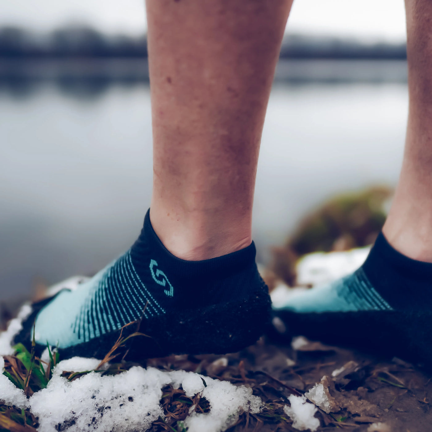 Beim Eisbaden riegelt der Körper die Blutzufuhr zu den Händen und Beinen bzw. Zehen ab. Das hat den Grund, dass er unsere lebenswichtigen Organe schützt. Durch meine Sockenschuhe fühl ich mich im Wasser geschützt, gerade bei einem steinigen Untergrund oder bei Wasser, wo man den Boden nicht sieht und auch das Gefühl des „Abriegeln“ der Blutzufuhr ist mit den Sockenschuhen um einiges erträglicher.