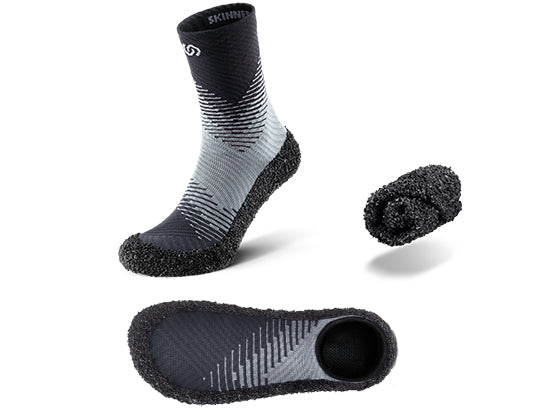 Socken sind nicht genug und Schuhe zu viel? Die kompakte Größe und die geniale 3mm dünne Barfuss Sohle machen aus den Skinners Sockenschuhen den perfekten Begleiter für deine Kinder. Egal ob für Kindergarten, Schule oder Freizeit. Natürlich auch für alle Aktivitäten am und im Wasser. Perfekter Grip und Schutz bei maximalen Komfort! Zusätzlich werden alle Muskeln und Gelenke in den Füssen mobilisiert & trainiert, was im jungen Alter besonders wichtig ist, um den Grundstein für gesunde Füsse zu legen. Eben fast wie Barfuss, dennoch hygienisch & geschützt.