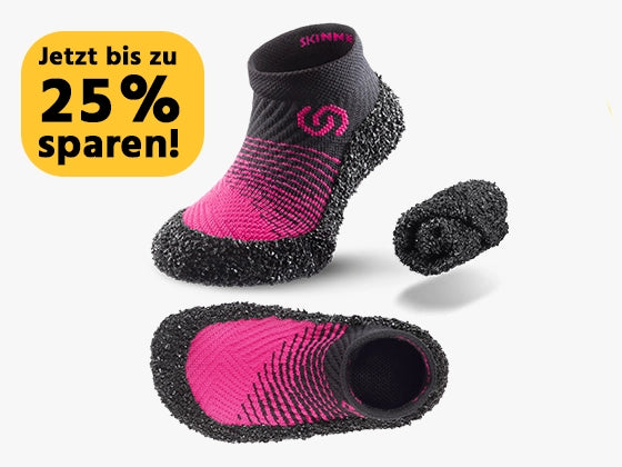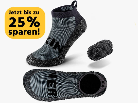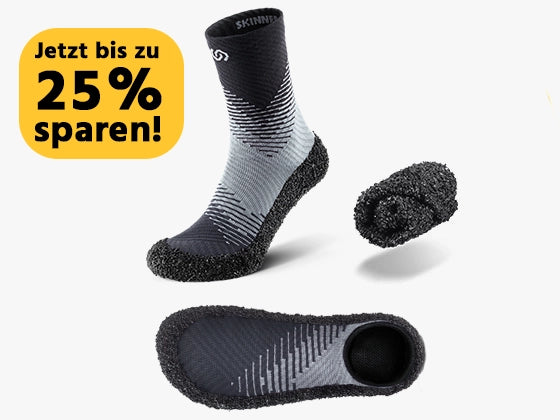 Einfach wie normale Socken anziehen und dann rein in die Sockenschuhe oder in jedes andere beliebige Schuhwerk!